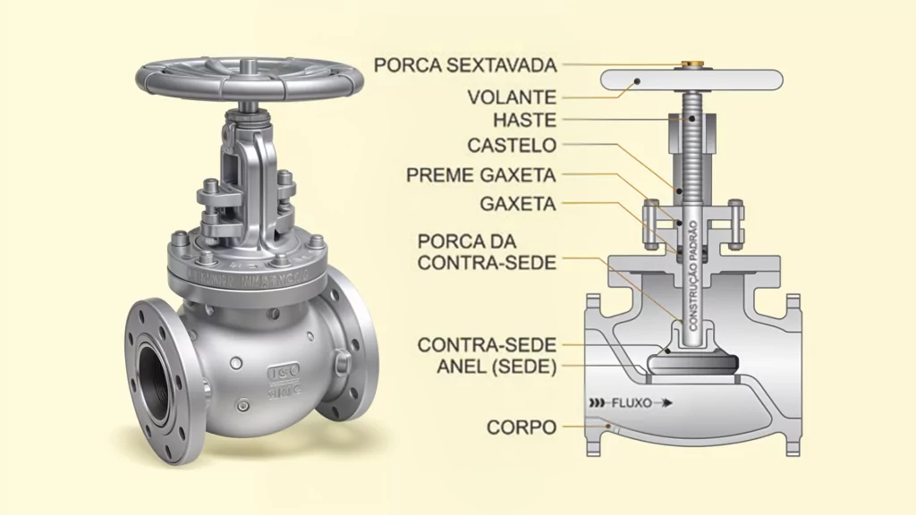 A válvula globo opera da seguinte forma: