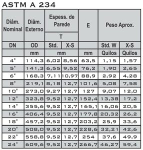 Material: ASTM-A-234WPB, ASTM-A-403WPW, WPS 304/L,316/L e Ligados